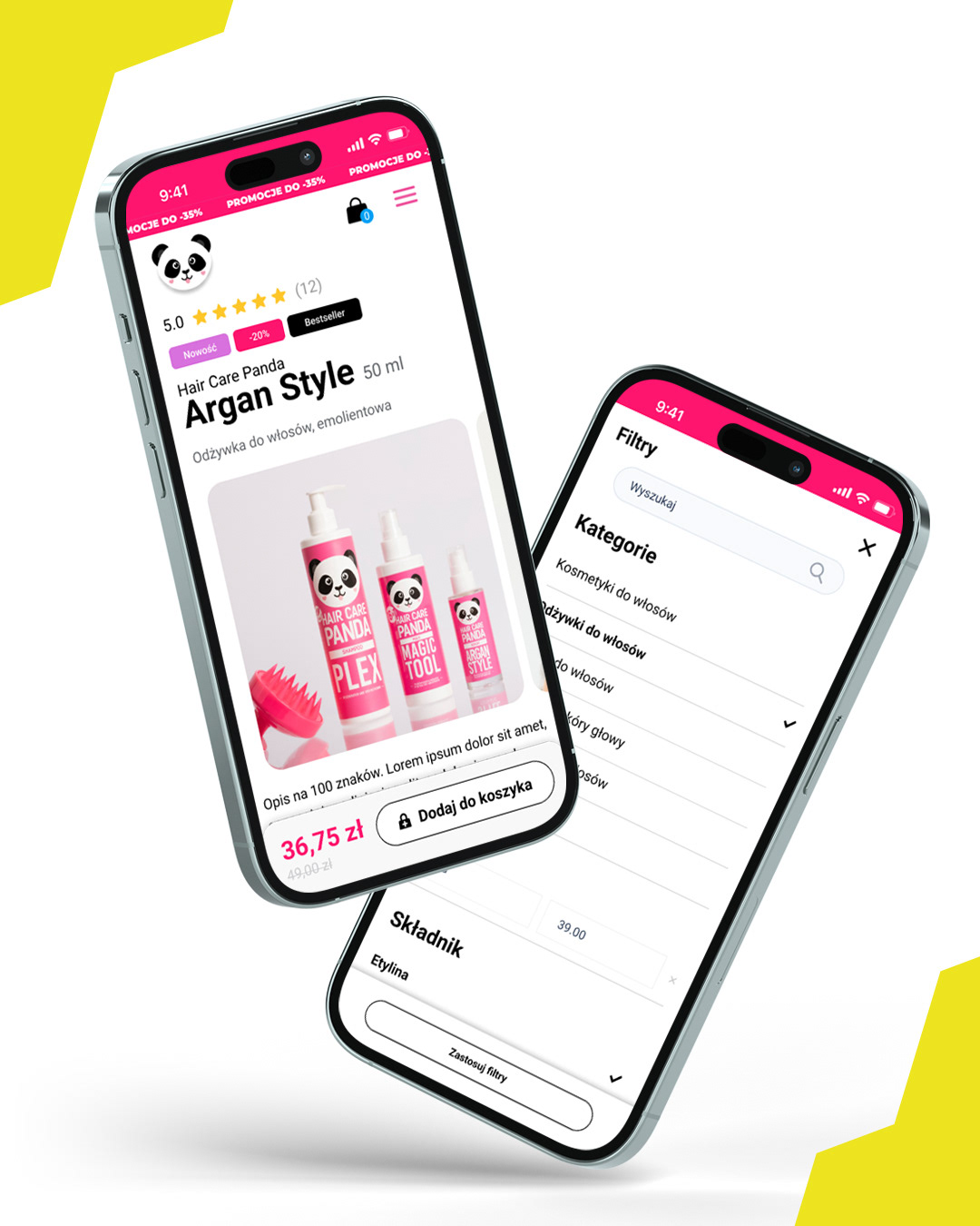 Zadanie: Stworzenie strony www dla kosmetyków do włosów i nie tylko. Proces tworzenia oparty był o stworzenie portalu, który po niedużych zmianach będzie mógł zostać aplikacją, stąd dużo elementów wspólnych dla www i app.
